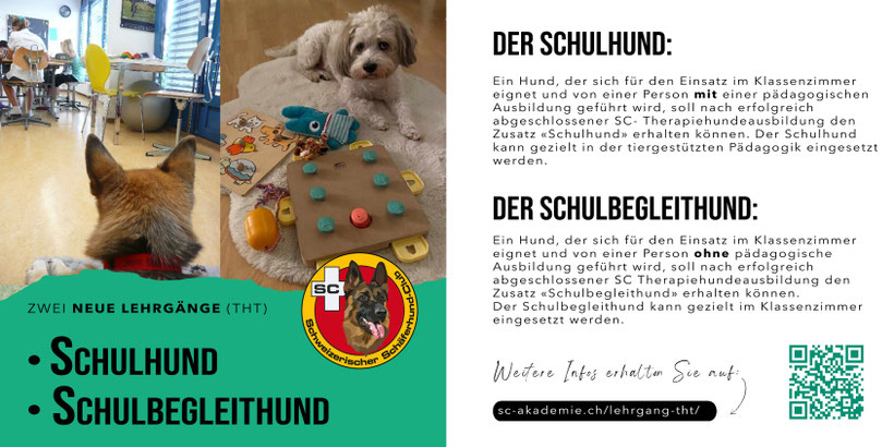 Weitere Infos zu den Lehrgängen «Schulhund» und «Schulbegleithund» sind hier aufgeschaltet: